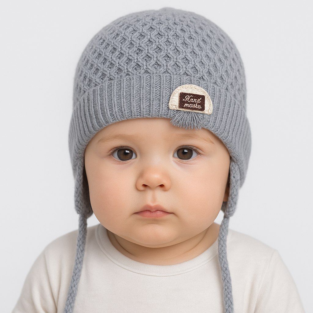 Фиксация без сползания: эластичная вязка и завязки — шапочка закрывает лоб и уши, держит форму.