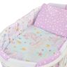 легкость и нежность. В комплект входят пододеяльник, простыня, наволочка, одеяло и подушка, а также бортики-подушечки,