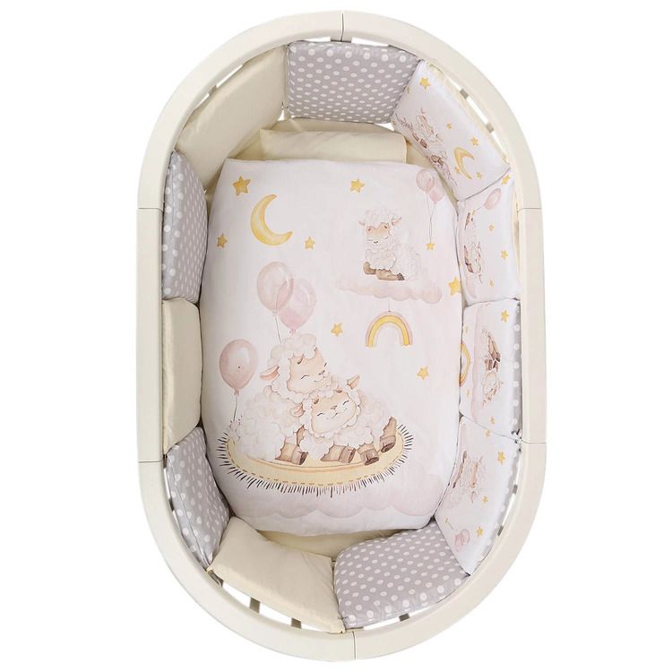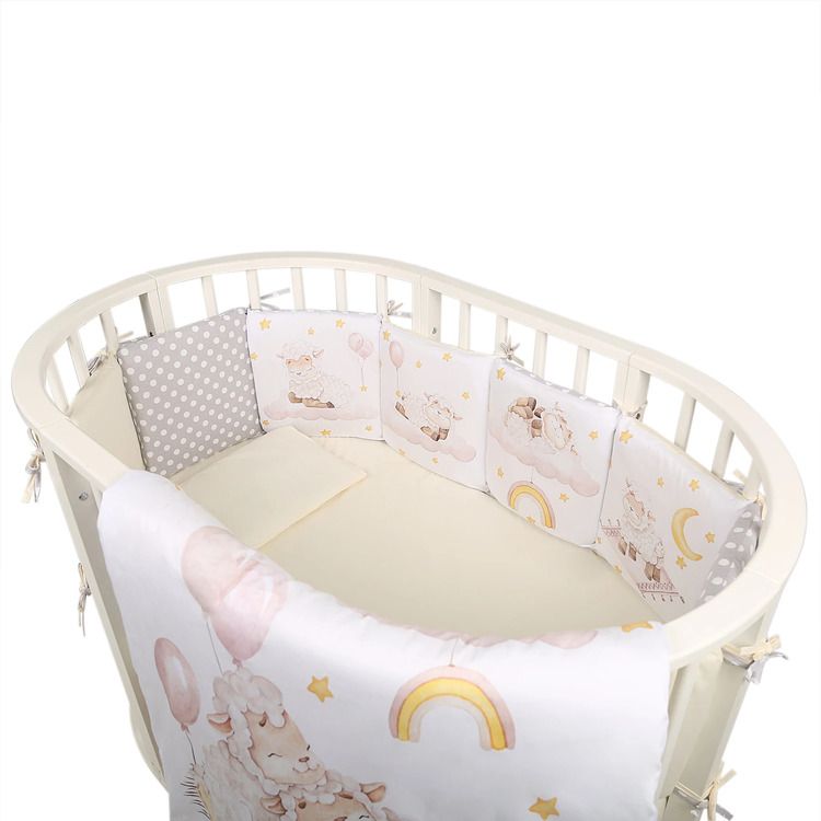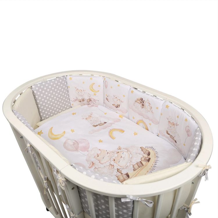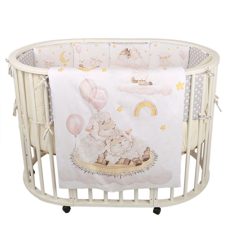 Комплект в кроватку ДОБРОЙ НОЧИ подходит как в кругло-овальную, так и в классическую детскую кроватку.