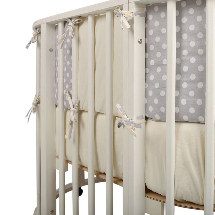 Защитный бортик состоит из 12 подушечек 30х30 см. Чехлы у подушек съемные - на молнии, их легко постирать при необходимости.