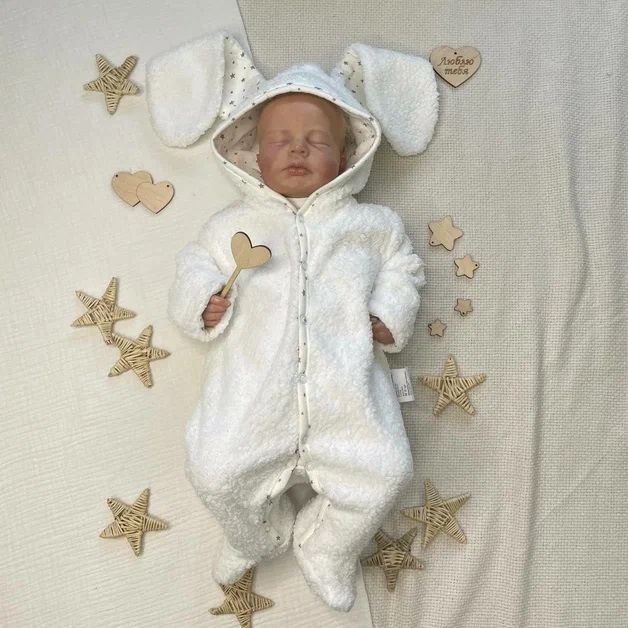 Мягкий и пушистый комбинезон подойдет как на первый так и на второй слой одежды. Снабжён удобной застежкой на кнопках, капюшон с прикольными ушками зайки.